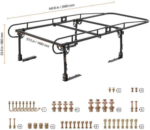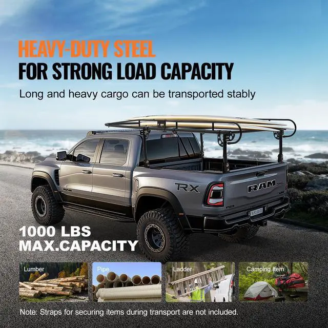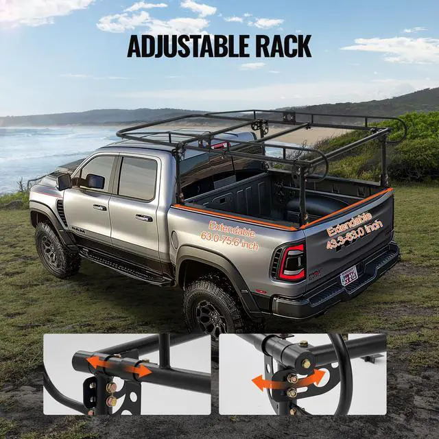 VEVOR Truck Rack Pick up Ladder Rack 1000lbs Capacity 43.3"-63" Width for Lumber