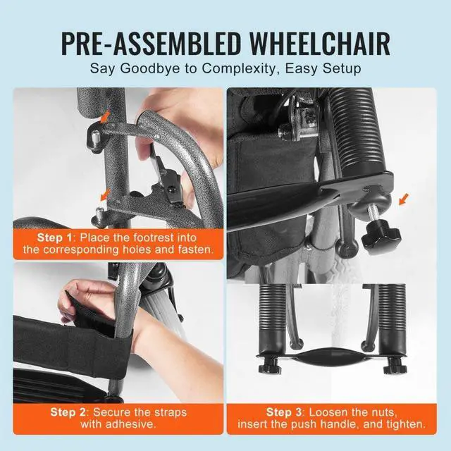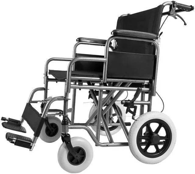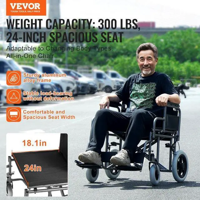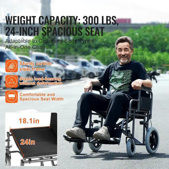 VEVOR Wheelchair Steel Transport Chair Foldable Wheelchair 24-In W Seat 300lbs