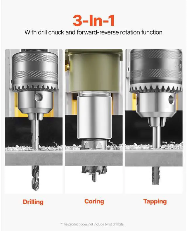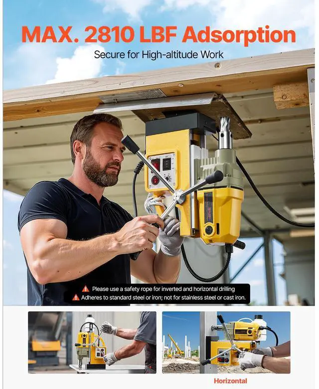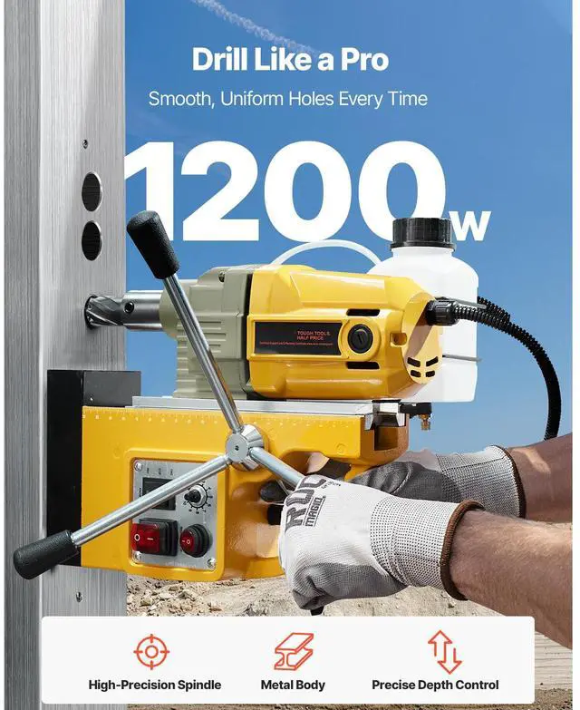 Magnetic Drill 1200W 2810 lbf Mag Drill Press 1.6 in Boring Diameter Yellow