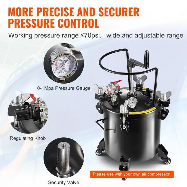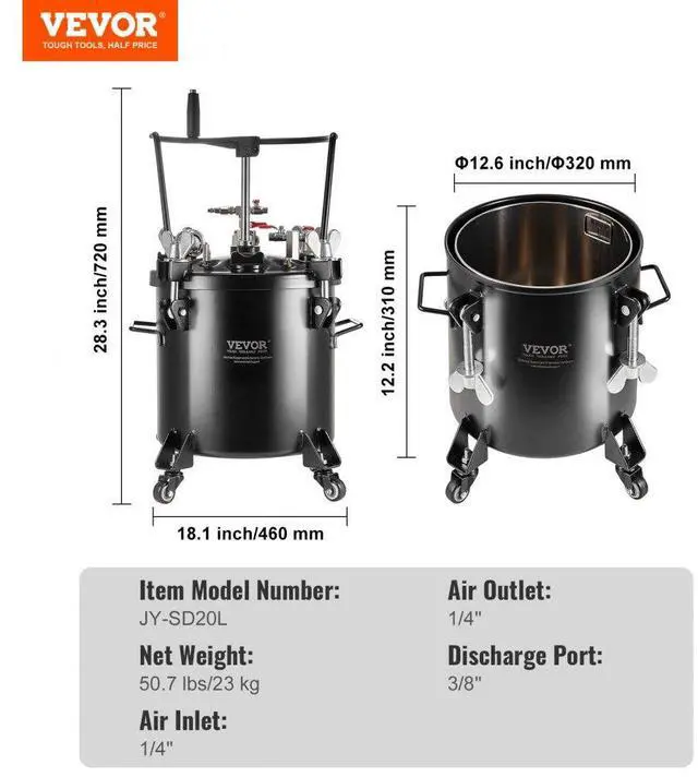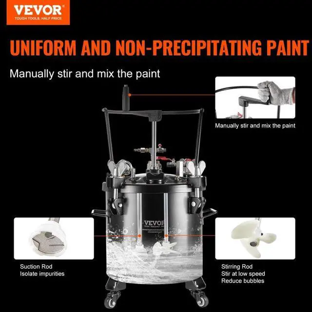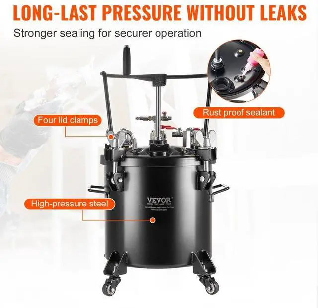 VEVOR Spray Paint Pressure Pot Tank 20L/5gal with Casters Leak Repair Sealant
