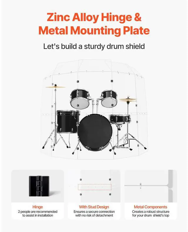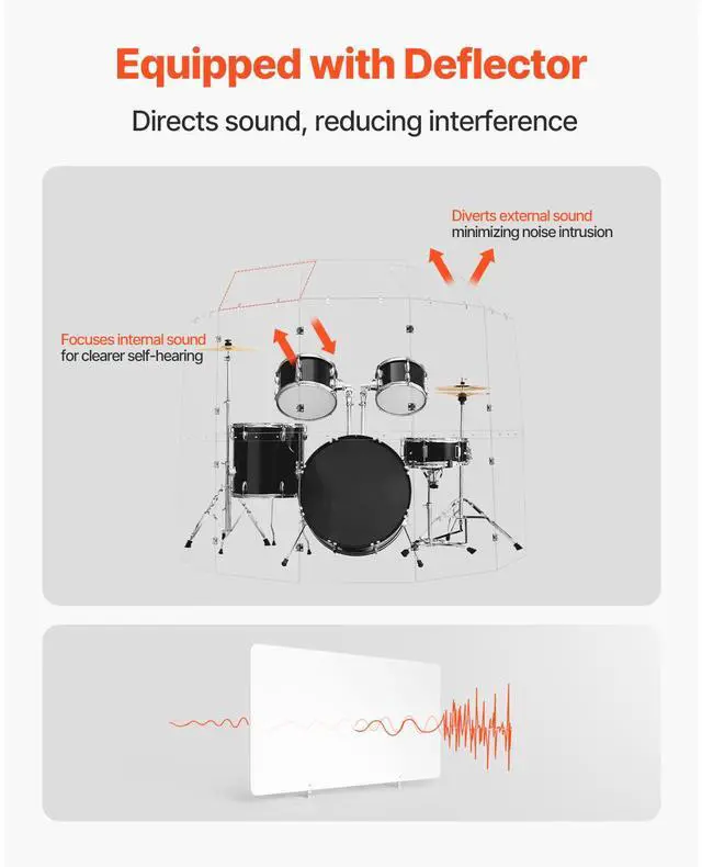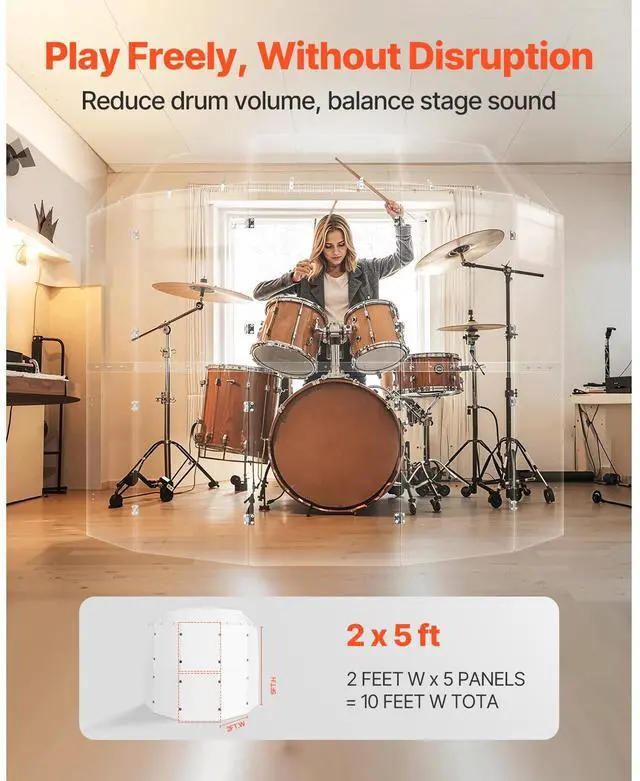 Drum Shield 5 Panels 2 ft x 5 ft Acrylic Drum Cage with Hinges and Deflectors
