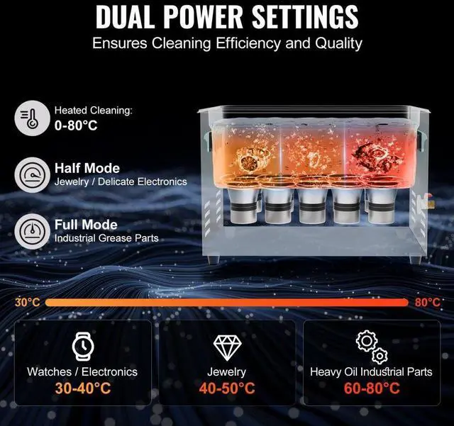 VEVOR 30L Sonic Cleaner, 600W Digital Ultrasonic Cleaning Machine with Upgraded Degassing and Gentle Mode, 40kHz Industrial Ultrasound Cleaner with Timer and Heater for Retainer Jewelry Tools