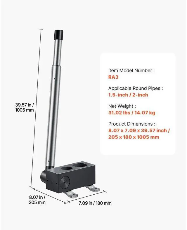 Applicable Round Pipes: 1.5-inch / 2-inch,Item Model Number: RA3,Product Dimensions: 8.07 x 7.09 x 39.57 inch / 205 x 180 x 1005 mm,Net Weight: 31.02 Ibs / 14.07 kg