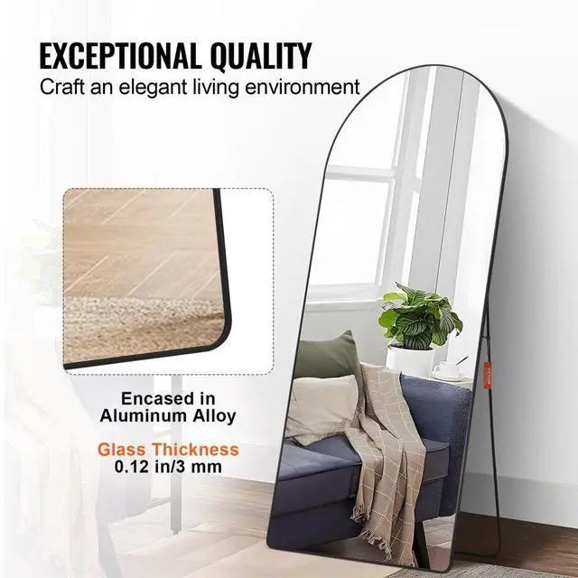 VEVOR Arched Full Length Mirror, 71'' x 32'', Large Free Standing Leaning Hanging Wall Mounted Floor Mirror with Stand Aluminum Alloy Frame, Full Body Dressing Mirror for Living Room Bedroom, Black