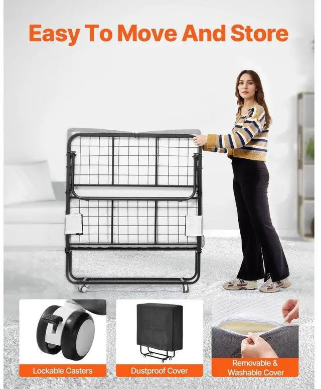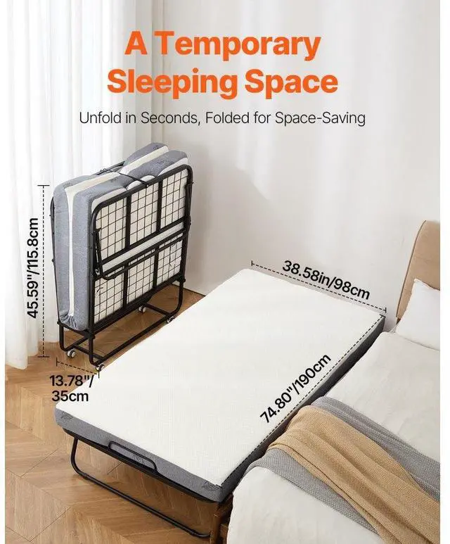 Rollaway Bed Folding Bed with 5 in Foam Mattress for Adults and Guest