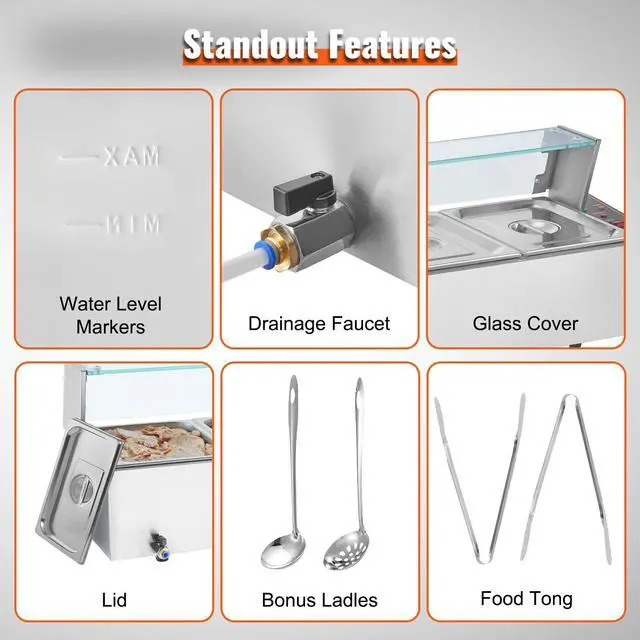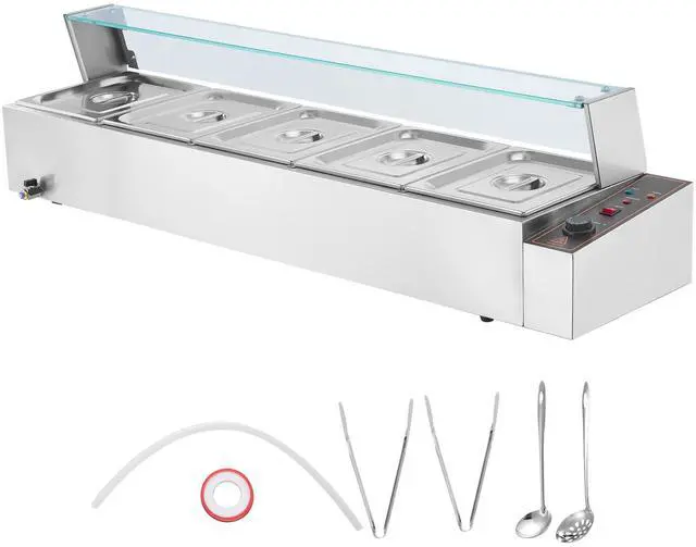 • VEVOR Commercial Electric Food Warmer Countertop Buffet 5*8Qt with Glass Shield