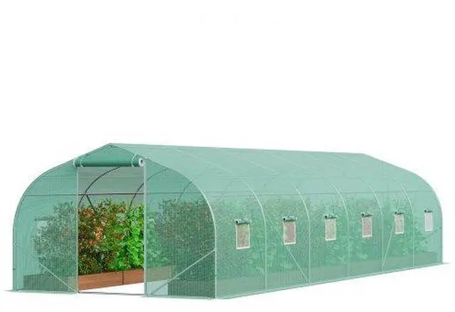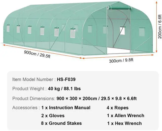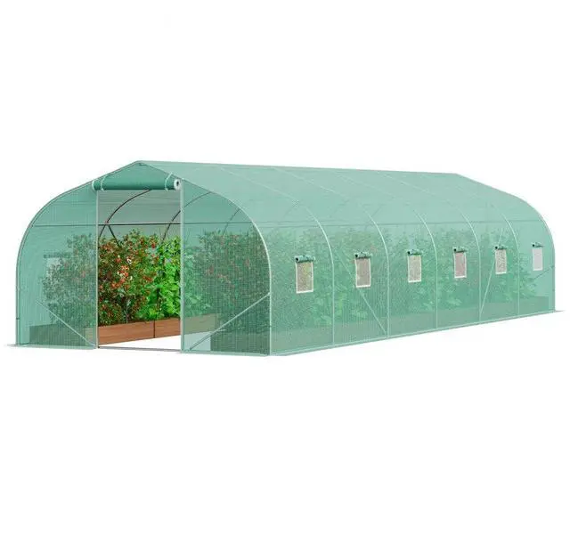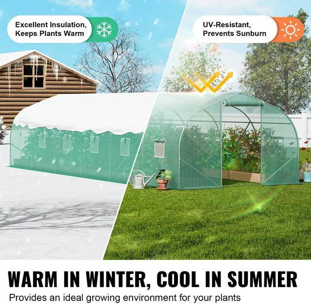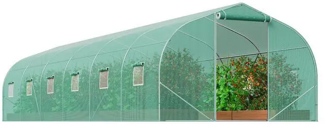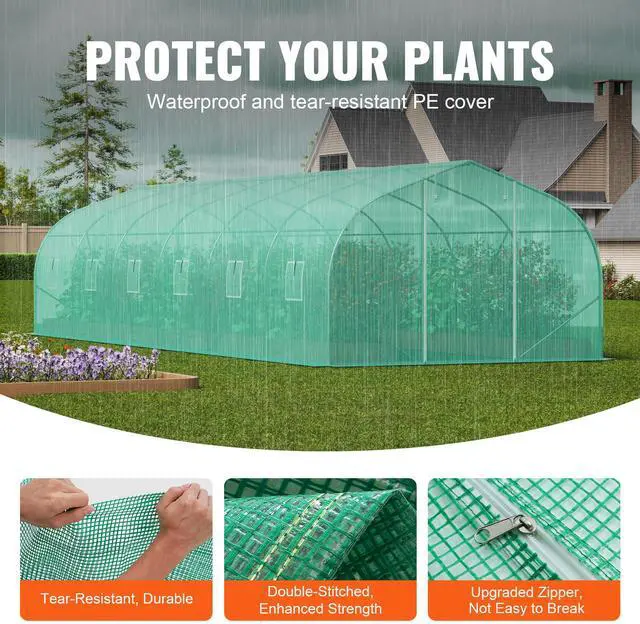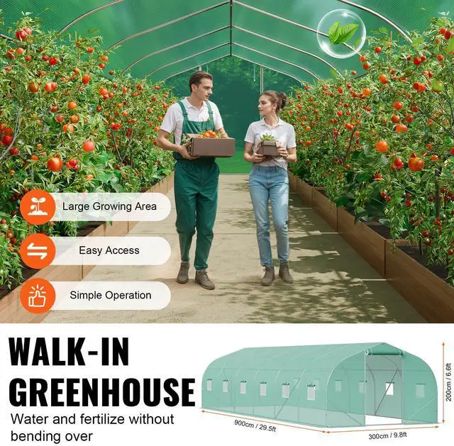 VEVOR Walk-in Tunnel Greenhouse 29.53x9.84x6.6ft Galvanized Frame PE Cover Green