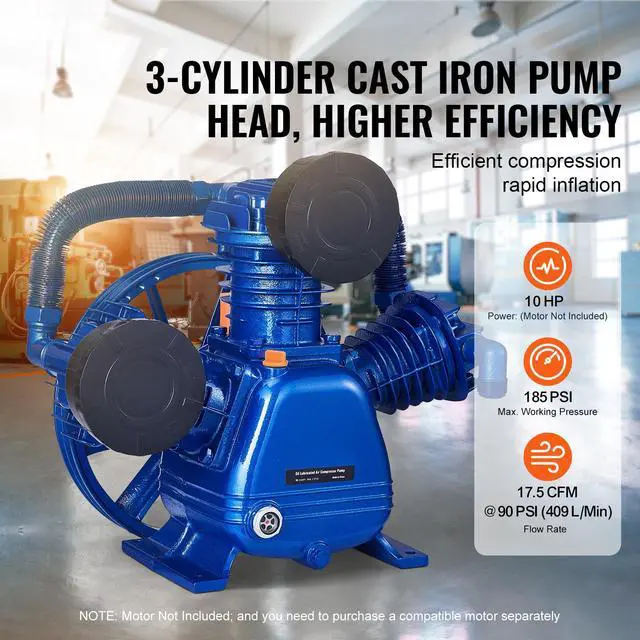 VEVOR Air Compressor Pump Head 10HP 17.5CFM @ 90PSI 3-Cylinder Piston Pump Head