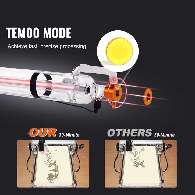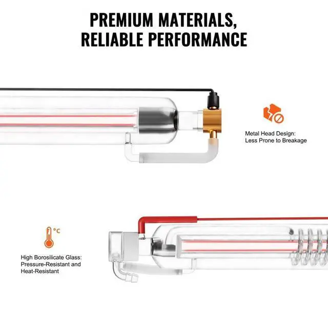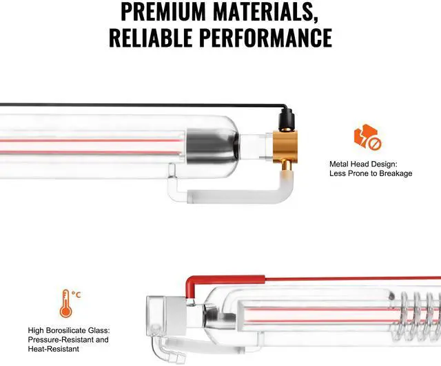 VEVOR 60W CO2 Laser Tube 49.2 in / 1250 mm Borosilicate Glass Laser Cutter Tube