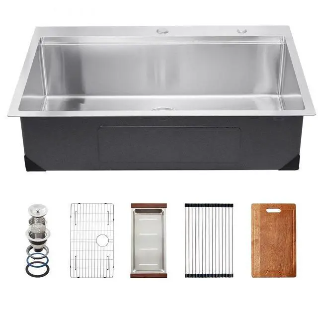33" Kitchen Sink Top Mount Single Bowl Drop-In Basin Stainless Steel Bar