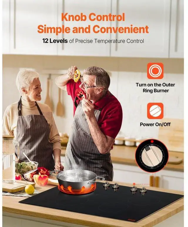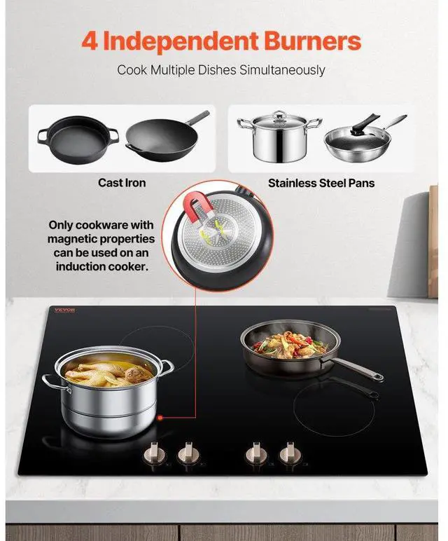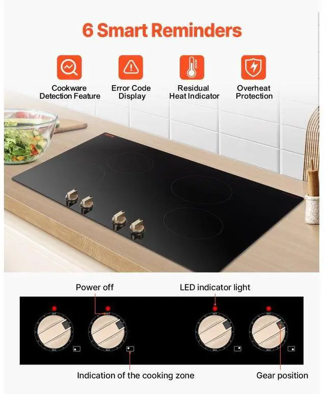 VEVOR 6600W 4 Burner Induction Cooktop Electric Countertop Burner Knob Control