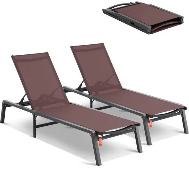 VEVOR Chaise Lounge Chair Outdoor Patio Lounge Chair Adjustable 5-Position 2 pcs