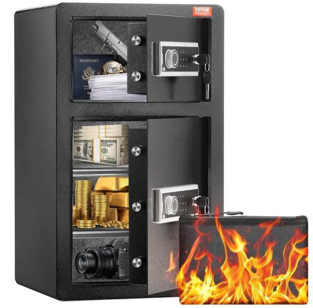VEVOR Double Door 4.5 cu.ft Safe Box with Key Lock Password Fireproof Bag Black,organize cash, passports, jewelry, gold, watches and documents