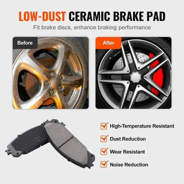 Brake Pad Size: 6.6 × 2.3 × 0.7 inch/ 166.5 ×59×17 mm (Front), 4.5 × 1.8 × 0.6 inch/115×46×15 mm (Rear)