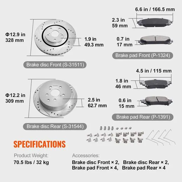 Brake Rotor Part Number: S-31511 (Front), S-31544 (Rear)
