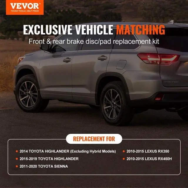 • VEVOR Drilled Slotted Front&Rear Brake Rotors Pads for Toyota Sienna Highlander