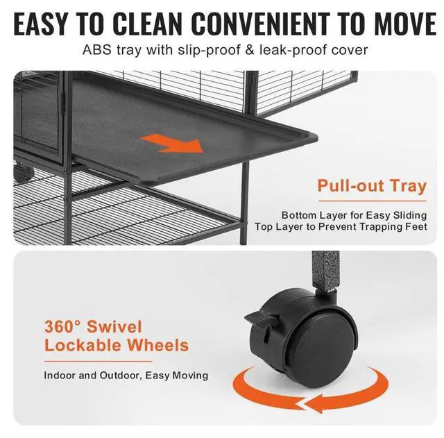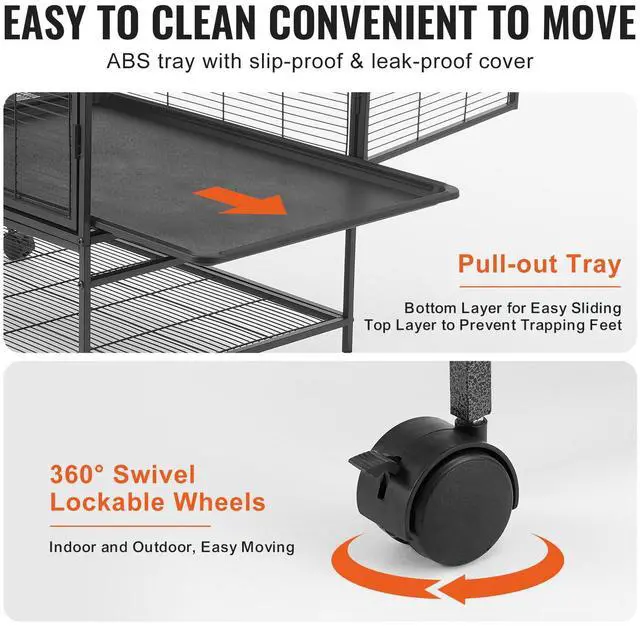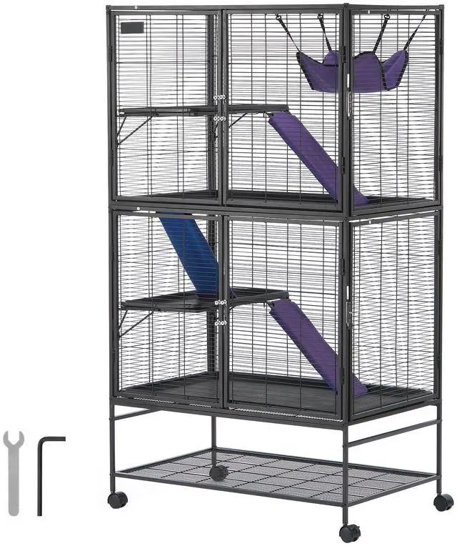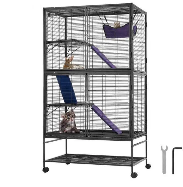 VEVOR 64.6" Metal Small Animal Cage 4-Tier Rolling Ferret Cage with Tray 3 Ramps