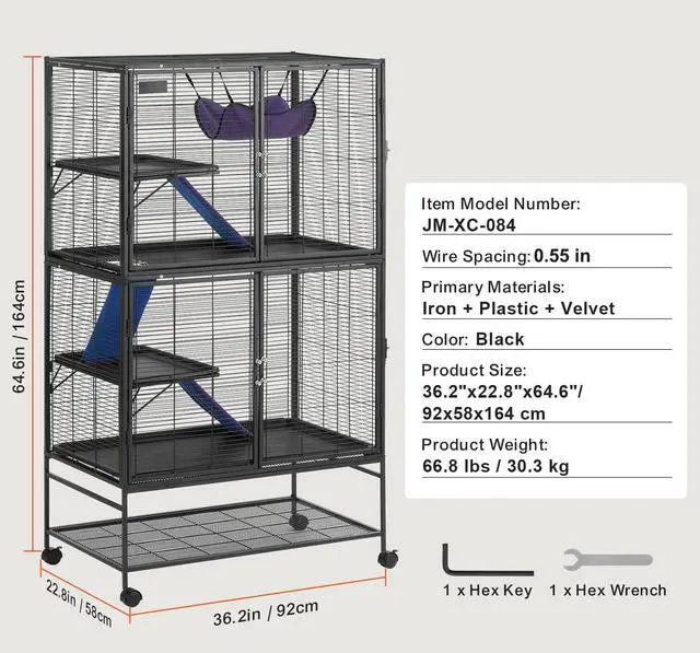 Primary Materials: Iron + Plastic + Velvet,Wire Spacing: 1/2 inch,Color: Black,Item Model Number: JM-XC-084,Product Weight: 66.8 lbs / 30.3 kg,Product Size: 36.2"x22.8"x64.6"/920x580x1640 mm