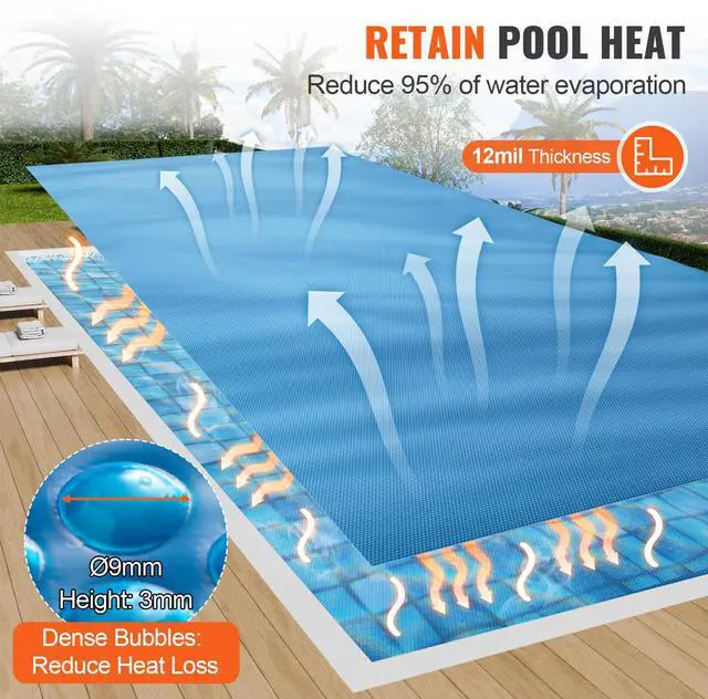 VEVOR Solar Pool Cover, 40 x 20 ft Rectangle Solar Blanket for Pools, Inground Above Ground Swimming Pool Solar Cover, 12 mil Solar Covers Blue