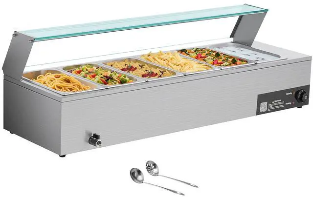 VEVOR Commercial Electric Food Warmer Countertop Buffet 6*5Qt with Glass Shield