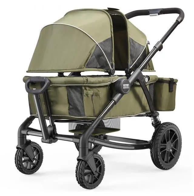 VEVOR All-Terrain Stroller Wagon, 2 Seats Foldable Expedition 2-in-1 Collapsible Wagon Stroller, Includes Canopy, Parent Organizer, Snack Tray & Cup Holders, 55lbs for Single Seat, Olive Green