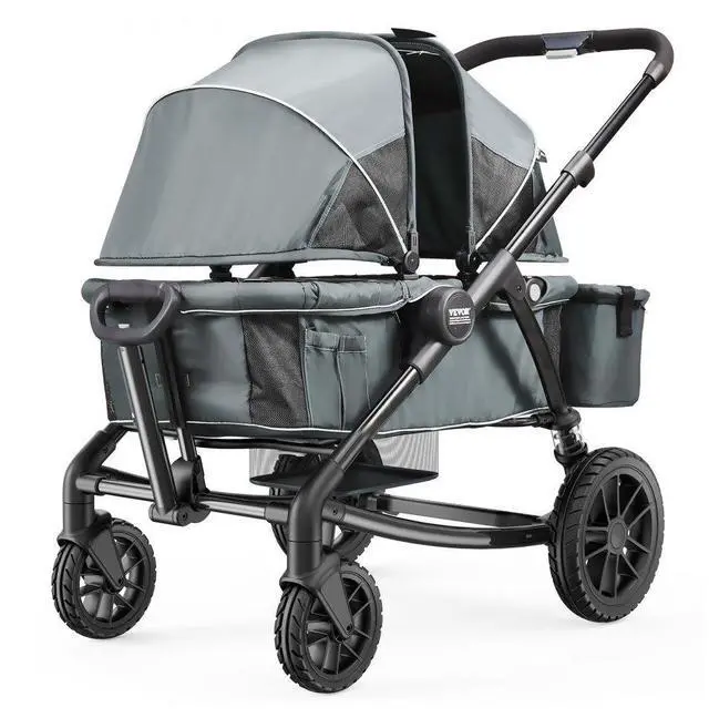 VEVOR All-Terrain Stroller Wagon, 2 Seats Foldable Expedition 2-in-1 Collapsible Wagon Stroller, Includes Canopy, Parent Organizer, Snack Tray & Cup Holders, 55lbs for Single Seat, Dark Grey/Black