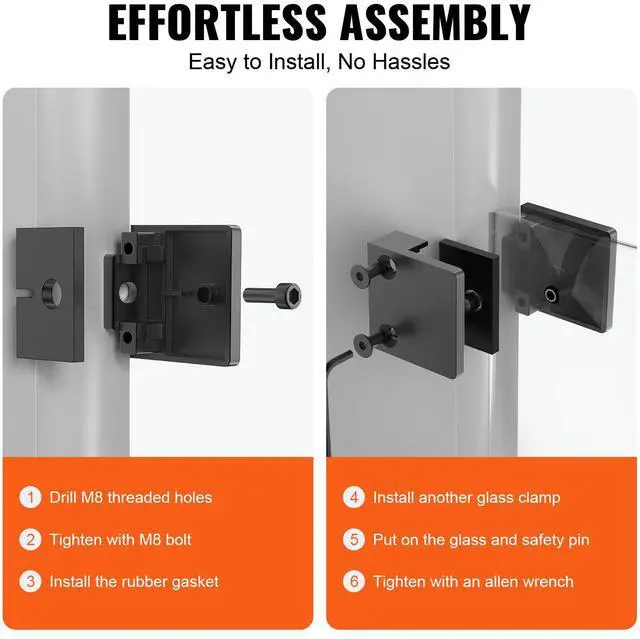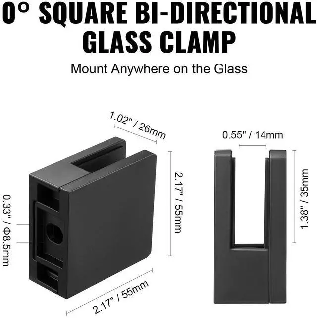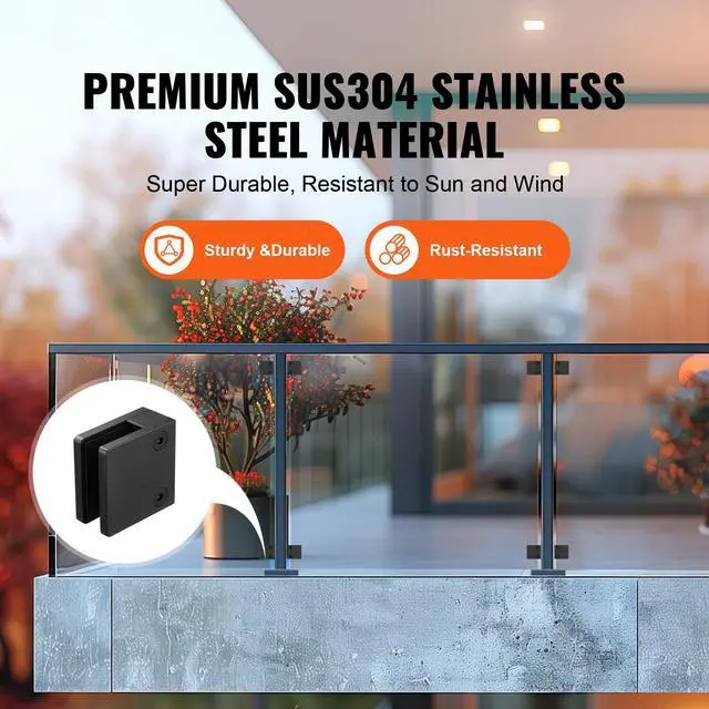 VEVOR Glass Clamp, 40 PCS Square Glass Railing Bracket for 0.31 "-0.47 " Tempered Glass, 304 Stainless Steel Glass Mounting Clamp, Glass Shelf Bracket for Balcony, Garden, Deck, Stair, Black
