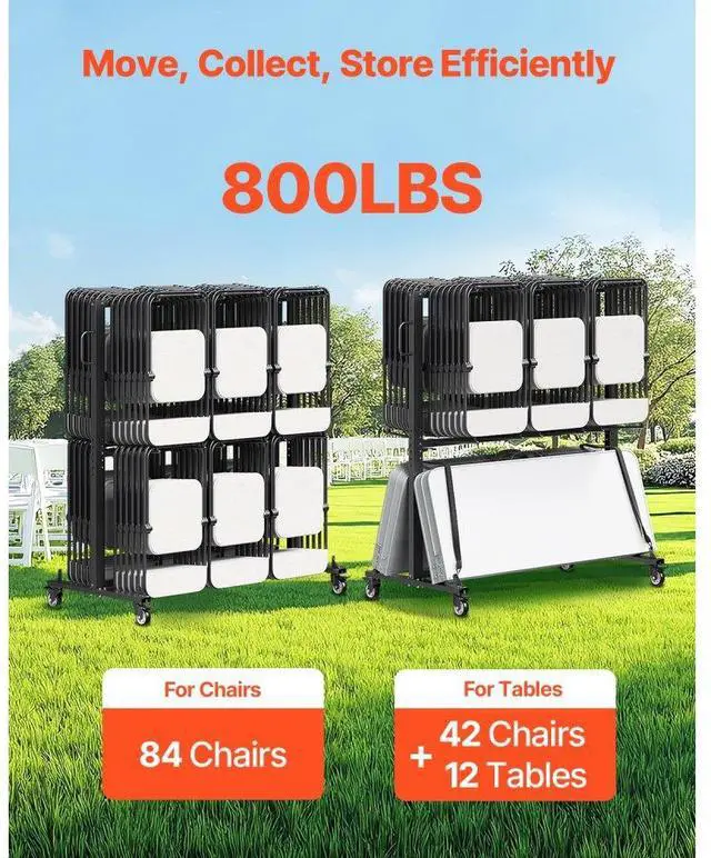 Folding Chair Rack Cart for 84 Chairs/ 12 Tables+42 Chairs of 800 LBS