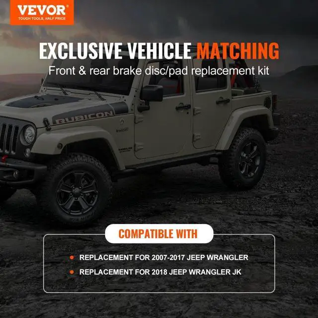 VEVOR Drilled Slotted Front&Rear Brake Rotors Pads Kit for 07-2017 Jeep Wrangler