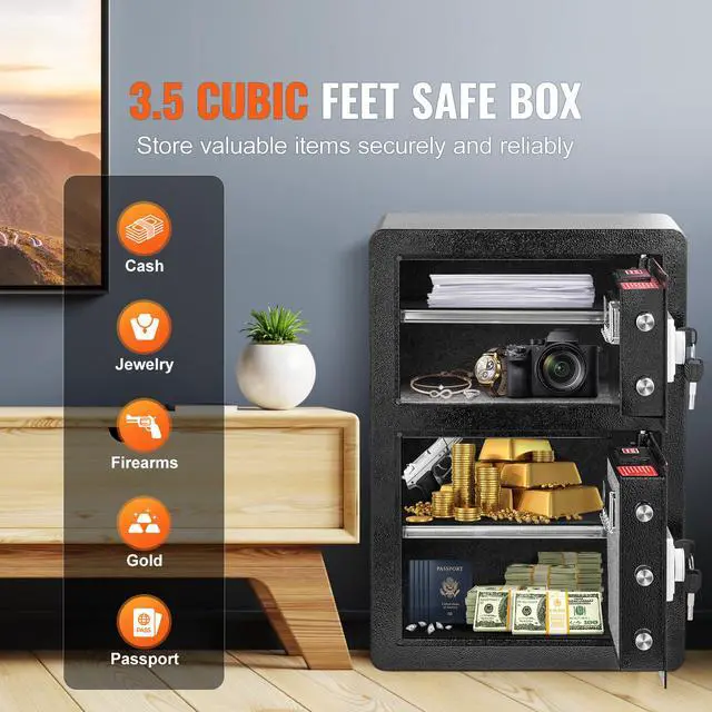 VEVOR Double Door 3.5 cu.ft Safe Box with Key Lock Password Fireproof Bag Black,organize cash, passports, jewelry, gold, watches and documents