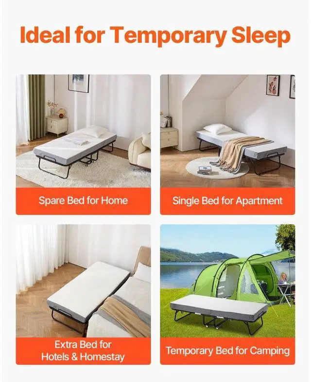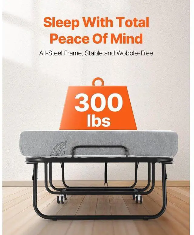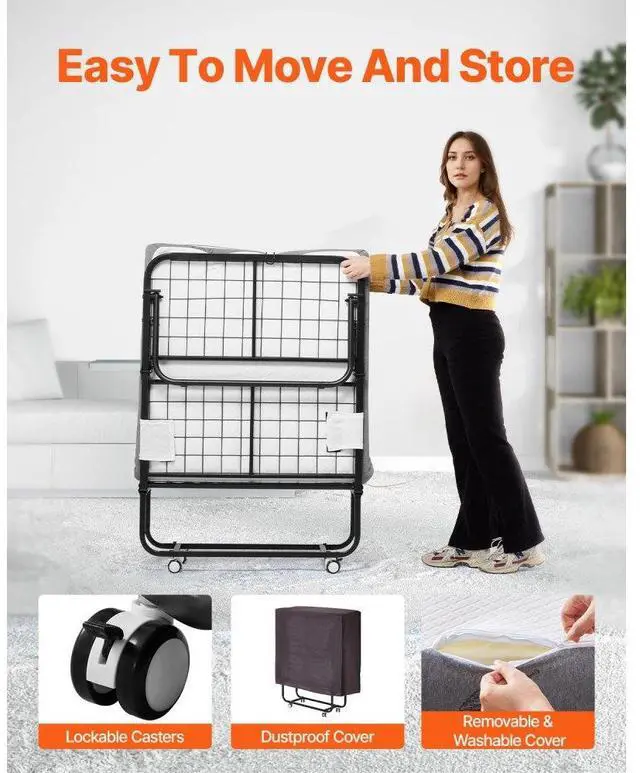 Rollaway Bed Folding Bed with 5 inches Foam Mattress for Adults & Guest