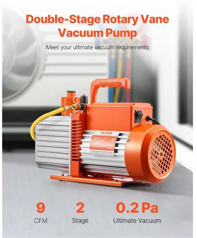 Vacuum Pump 9 CFM HVAC 2 Stage Rotary Vane Vacuum Pump Oil Included