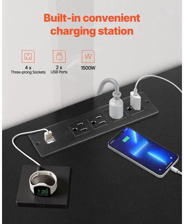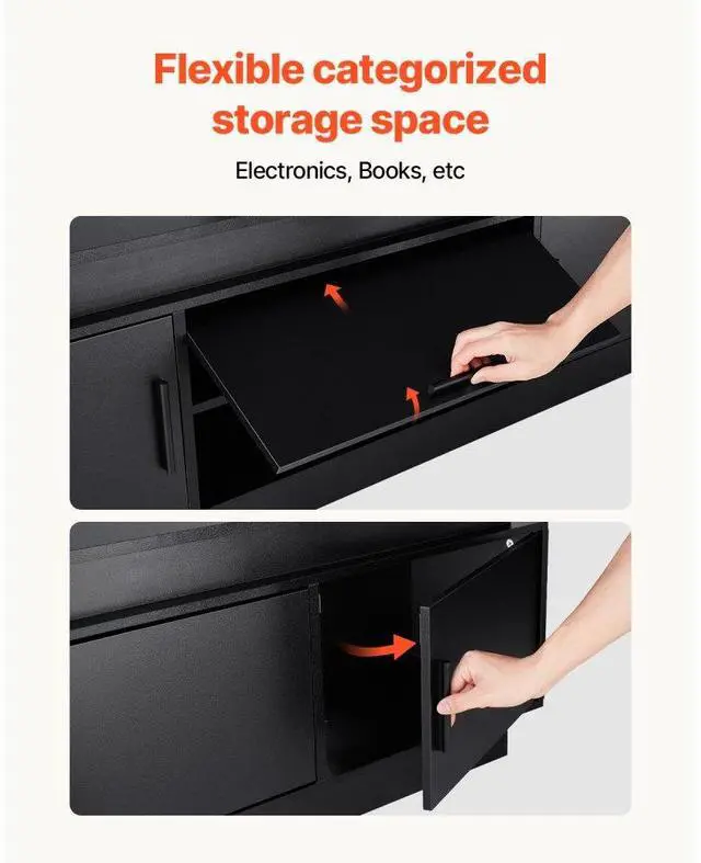 TV Stand Weight Capacity: 200 lbs / 90.7 kg,TV Cabinet Weight Capacity: 110 lbs / 49.9 kg,Storage Shelves: 3 Tiers,Socket Ports: 4 x Three-Prong Outlets + 2 x USB Ports,Power Strip Wattage: 1500W,Color: Black,Material: Carbon Steel + Particle Board,Compatible TV Size: 32-75 inches / 810-1900 mm,Product Dimensions: 59.1 x 13.0 x 18.5 in / 1500 x 330 x 470 mm,Light Tube: 2 x Magnetic Light Tubes,VESA Mount (Max): 23.6 x 15.7 in / 600 x 400 mm,Item Model Number: C240412S-01,Strip Light: 16 Colors LED Strip Light ,Cable Length: 6.6 ft / 2 m,Net Weight: 66.6 lbs / 30.2 kg
