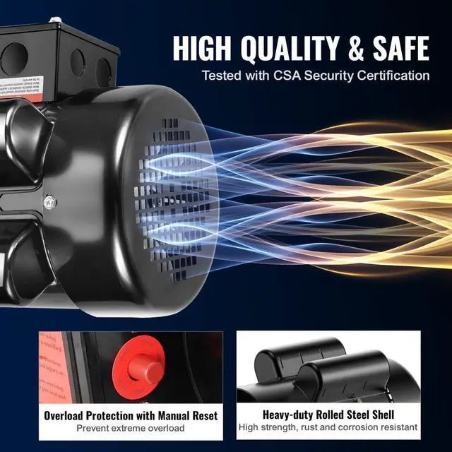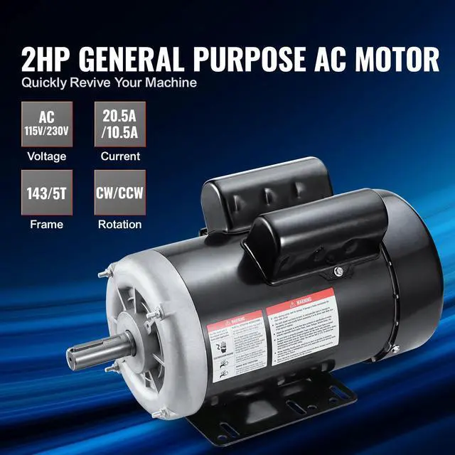 • VEVOR 2HP Electric Motor 1725 rpm, AC 115V/230V, 143/5T Frame, Air Compressor Motor Single Phase, 7/8" Keyed Shaft, CW/CCW Rotation for Agricultural Machinery and General Equipment