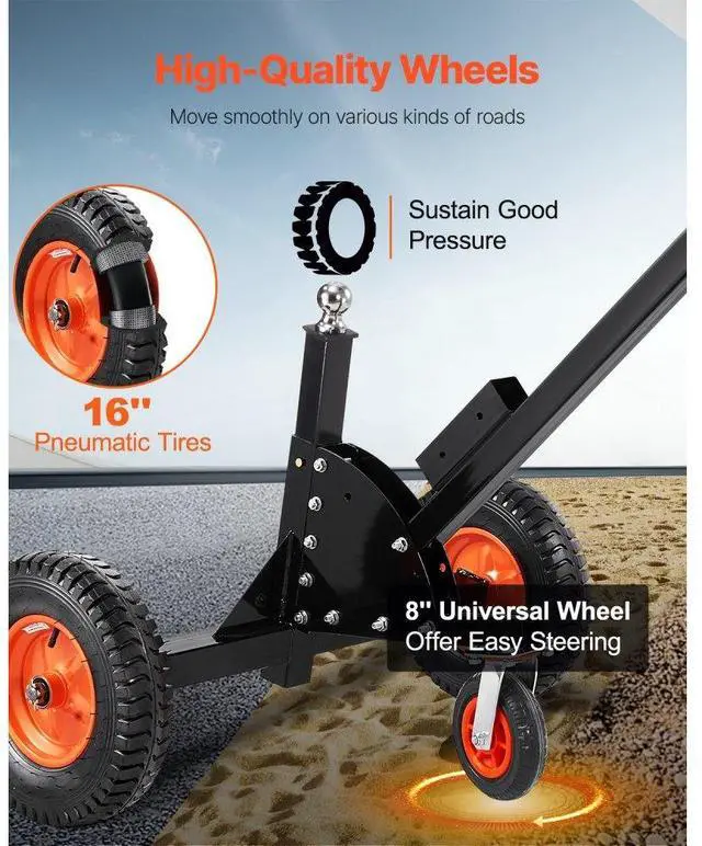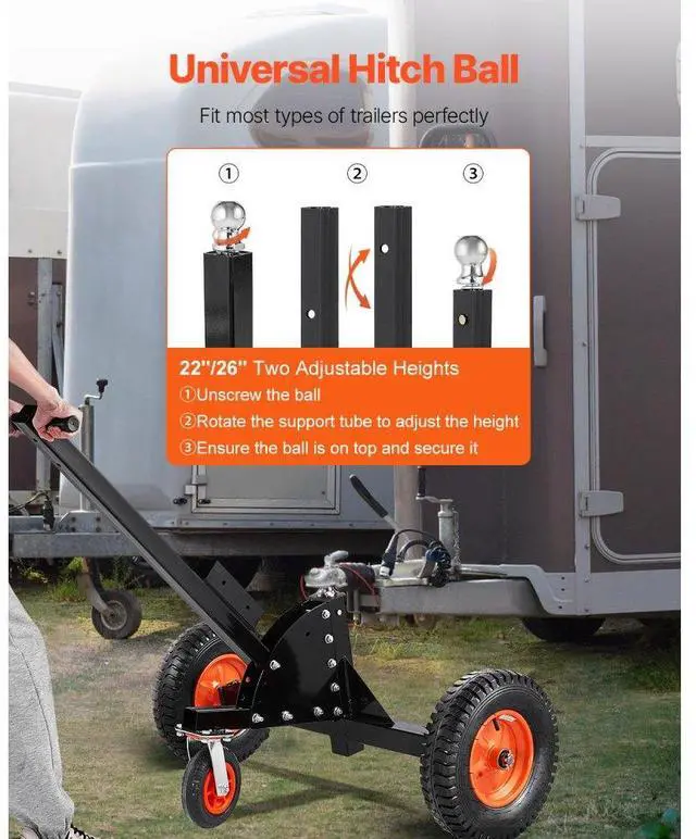 1500lbs 2-in-1 Trailer Dolly 22 and 26 in Adjustable Height 2in Ball with Caster