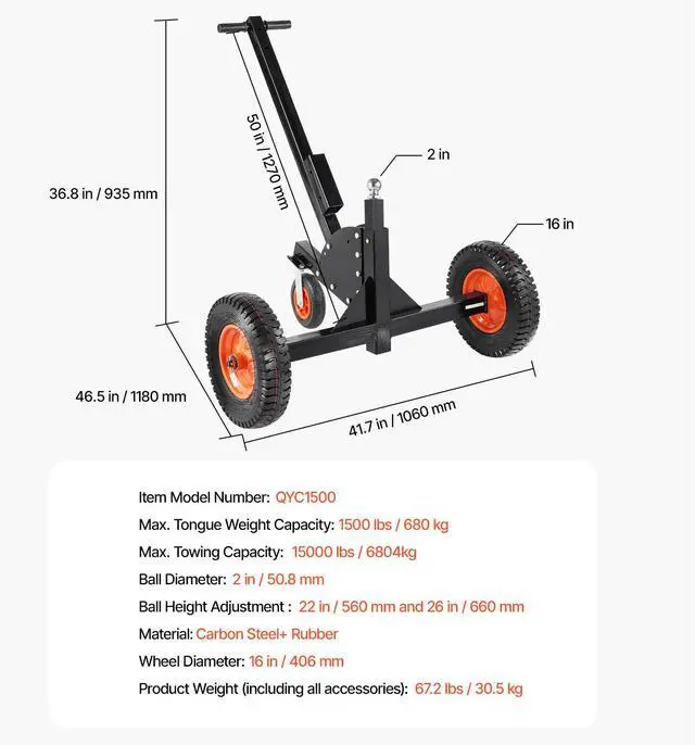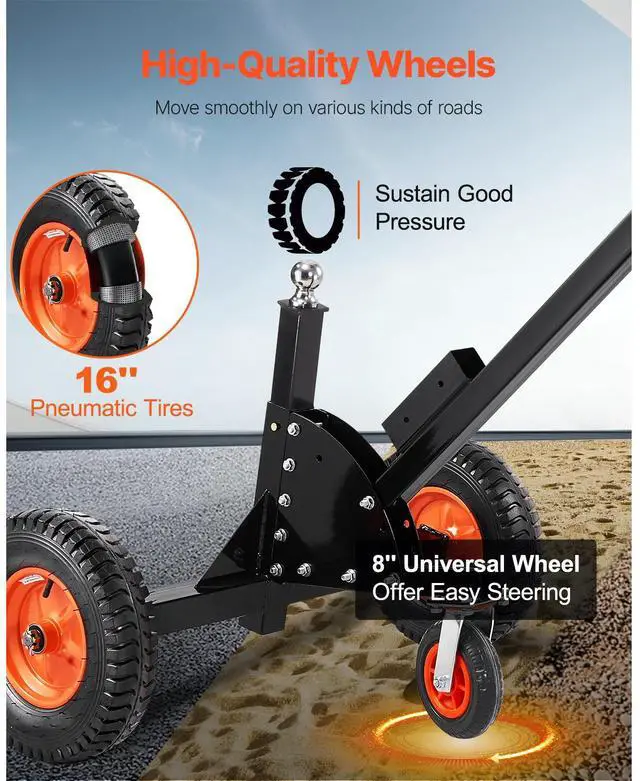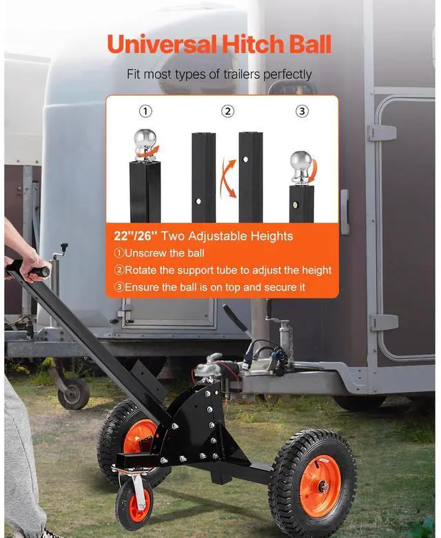VEVOR 1500lbs 2-in-1 Trailer Dolly 22 and 26 in Adjustable Height 2in Ball with Caster