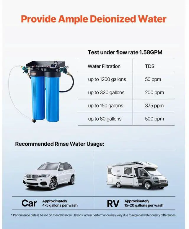 Spotless Deionized Water System Car Wash System with Integrated TDS Meter