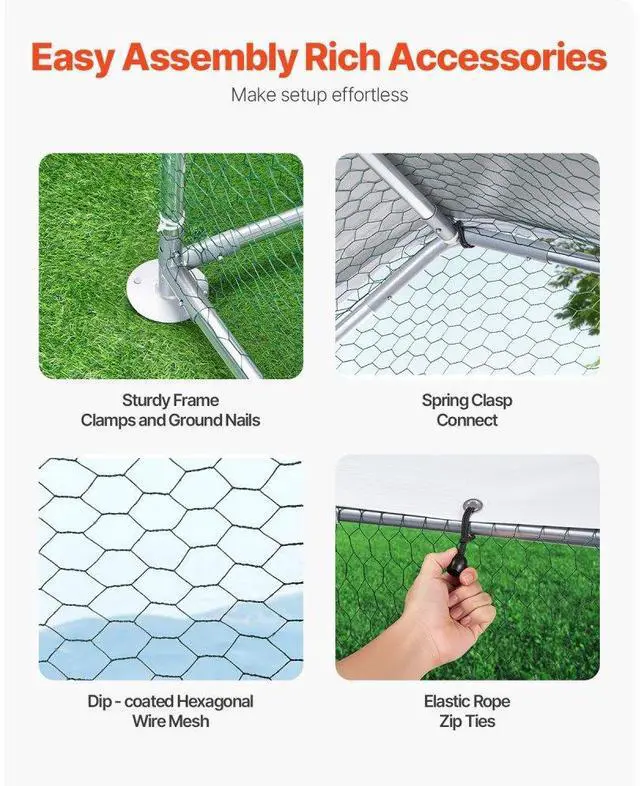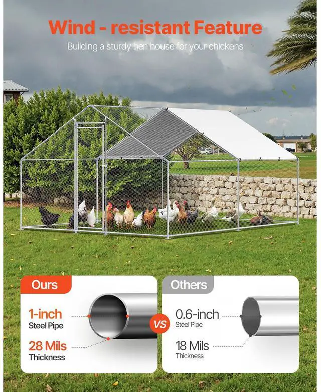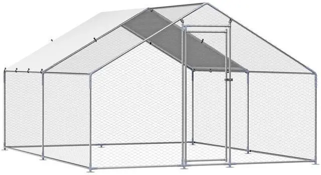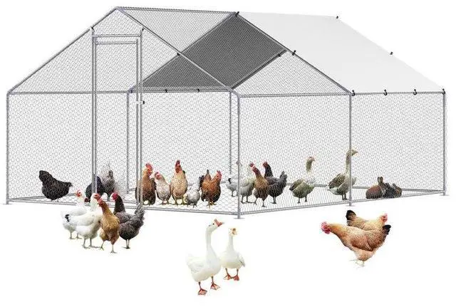 Sturdy Structure: With 1" thick galvanized steel pipes and precise welding, this chicken house boasts stability and wind resistance. The top cover facilitates effective drainage, preventing water accumulation. Reinforced with hexagonal protective mesh, it provides a safer space for the poultry.