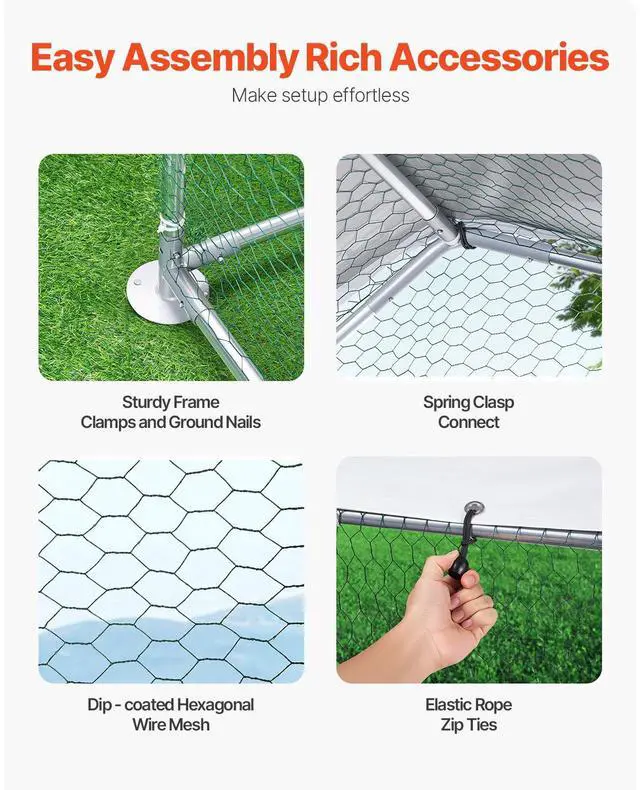 Weatherproof & Corrosion-proof: Crafted from galvanized steel pipes, and rigorously tested against salt spray, this chicken coop withstands harsh weather conditions like rain, wind, and sun exposure, ensuring long-term stability and safety.