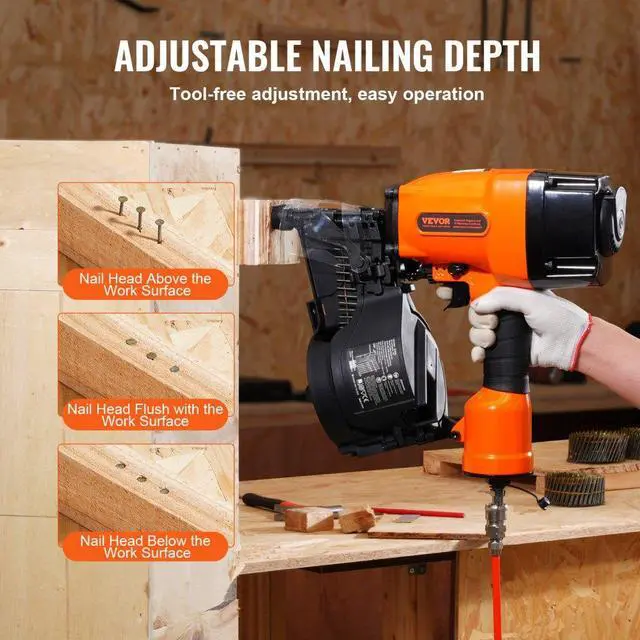 • VEVOR MCN90 Coil Framing Nailer 1-3/4" to 3-1/2" 15 Degree Pneumatic Nail Gun