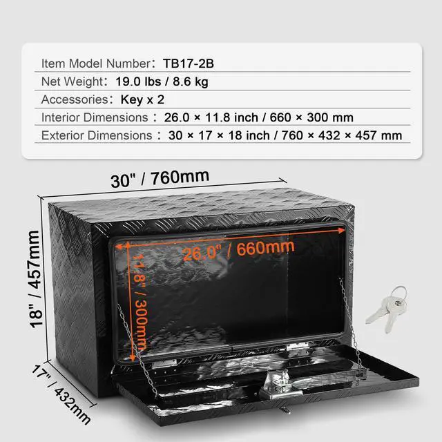 VEVOR Underbody Aluminum Truck Tool Box 30" x 17" x 18" Trailer RV Tool Storage