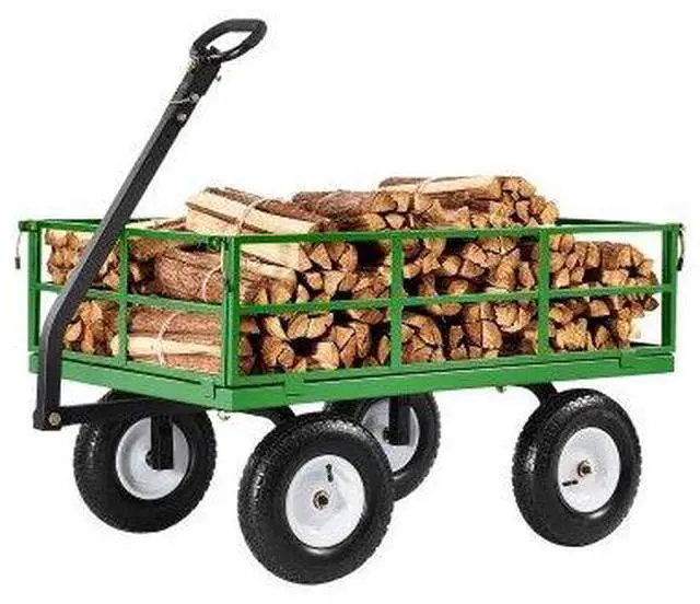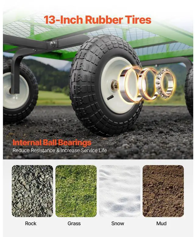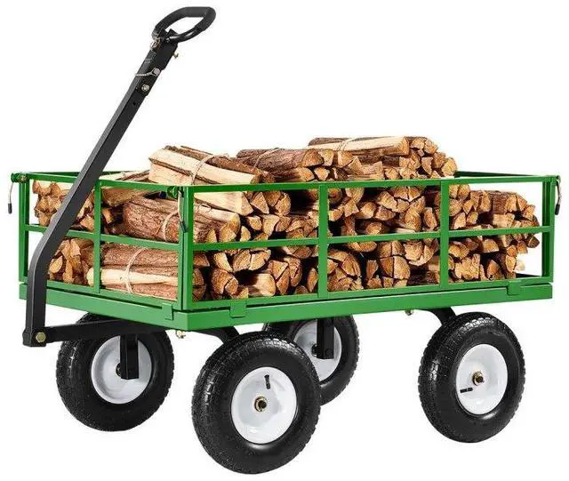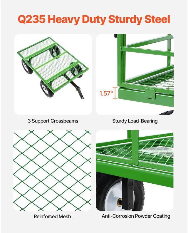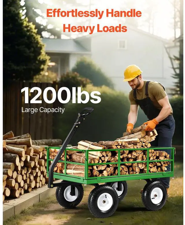 • Vevor 1200 Lbs Steel Garden Cart,Heavy Duty Pullable Garden Wagon Yard Cart,2 in 1 Outdoor Metal Utility Wagon Yard Trailer with 13" All Terrain Tires,Removable Mesh Sides and 180° Rotating Handle