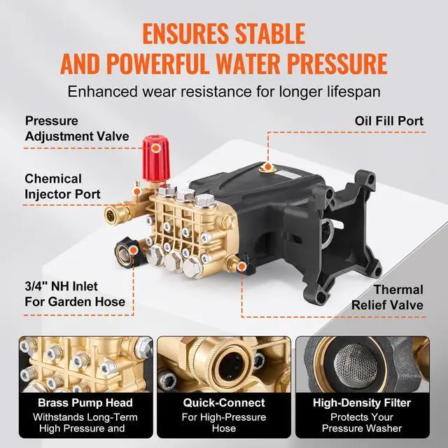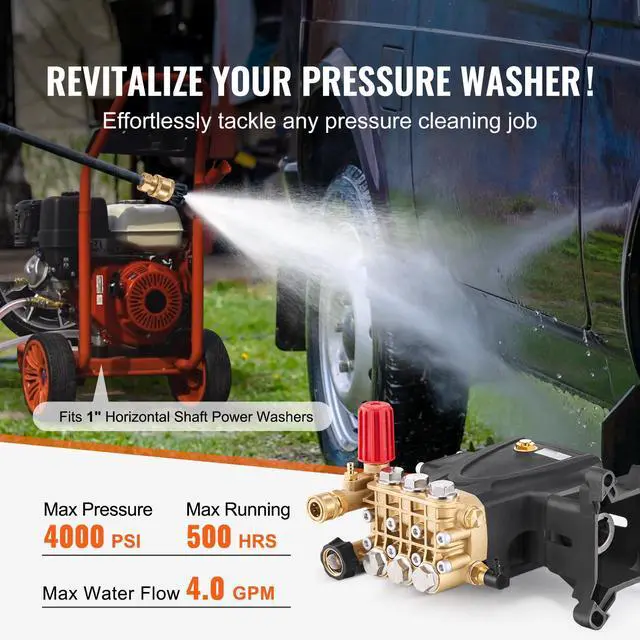 VEVOR Pressure Washer Pump 1" Shaft Horizontal Triplex Plunger 4000 PSI 4.0GPM