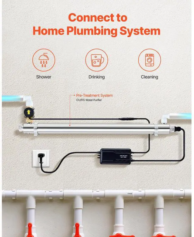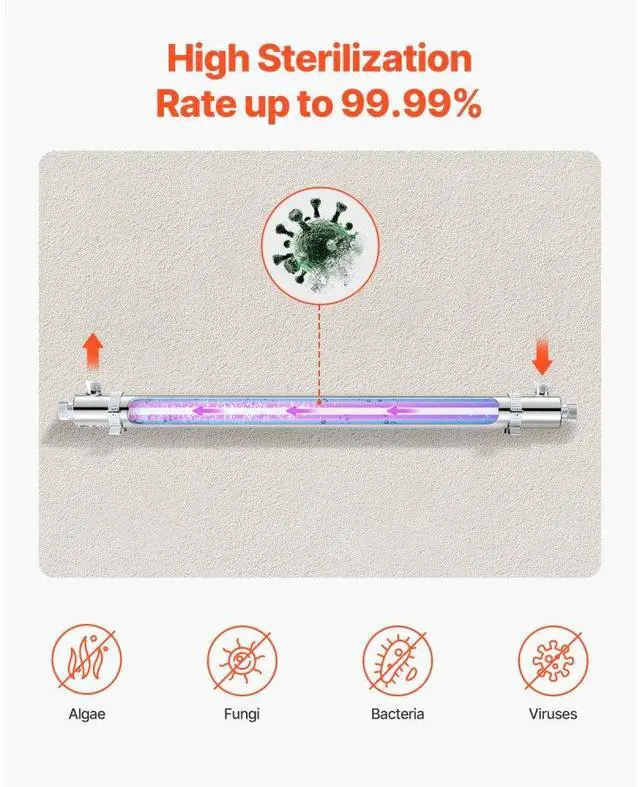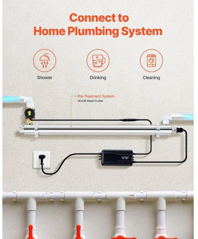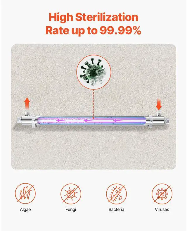 VEVOR 110V 55W UV Water Purifier 12GPM Ultraviolet Water Purifier Filter