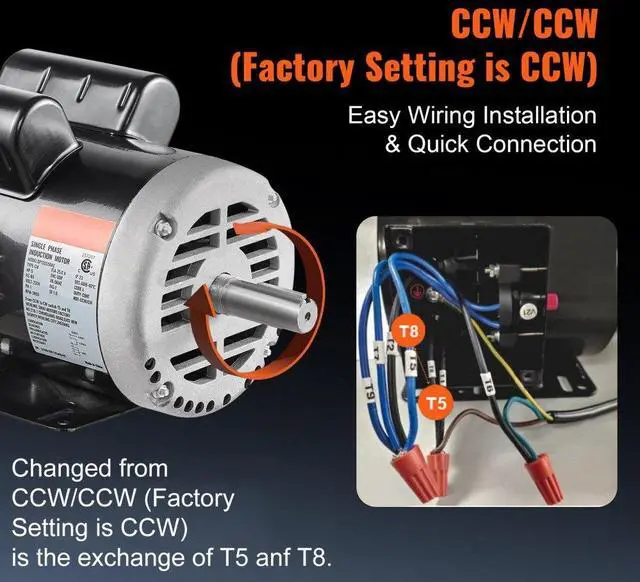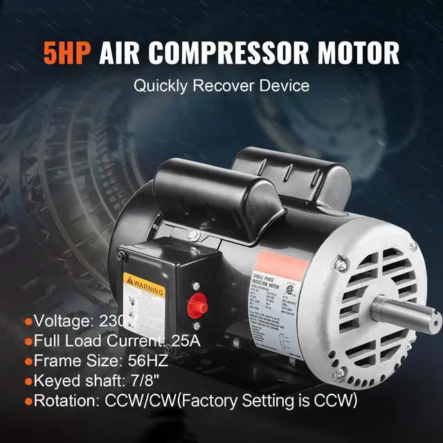 VEVOR 5HP Air Compressor Electric Motor 230V 25A 3450RPM 56Hz Frame CW/CCW Rotation