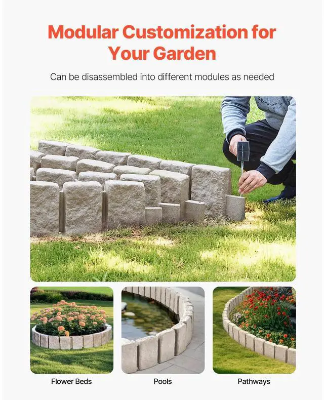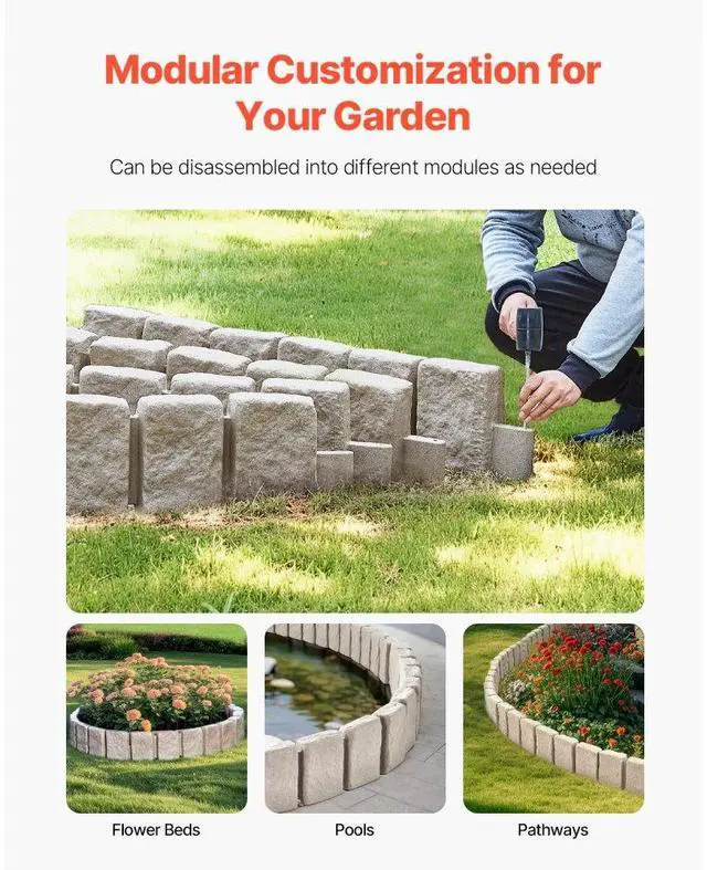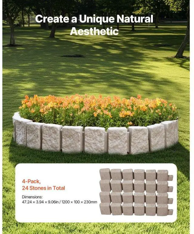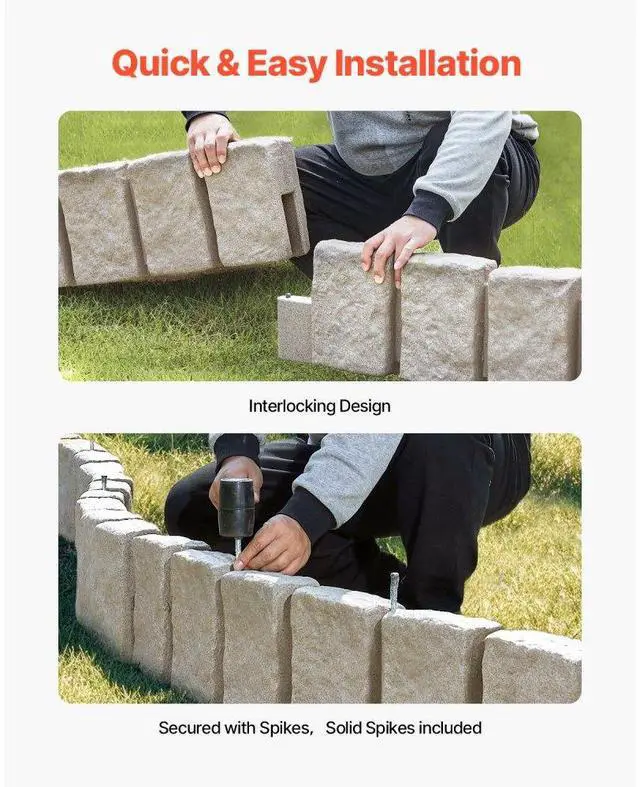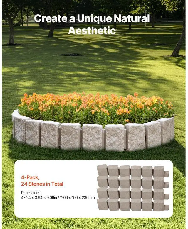 Fake Stone Landscape Edging 47.2 x 9 in Lawn Edging Border Fade-Resistant No Dig