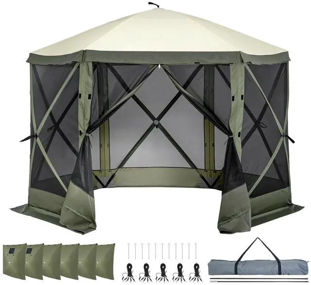 VEVOR Pop Up Gazebo Tent, Pop-Up Screen Tent 6 Sided Canopy Sun Shelter with 6 Removable Privacy Wind Cloths & Mesh Windows, 10x10FT Quick Set Screen Tent with Mosquito Netting, Army Green