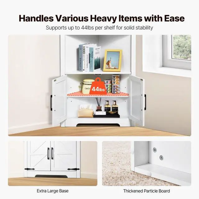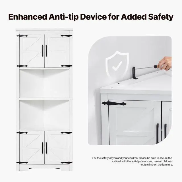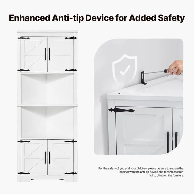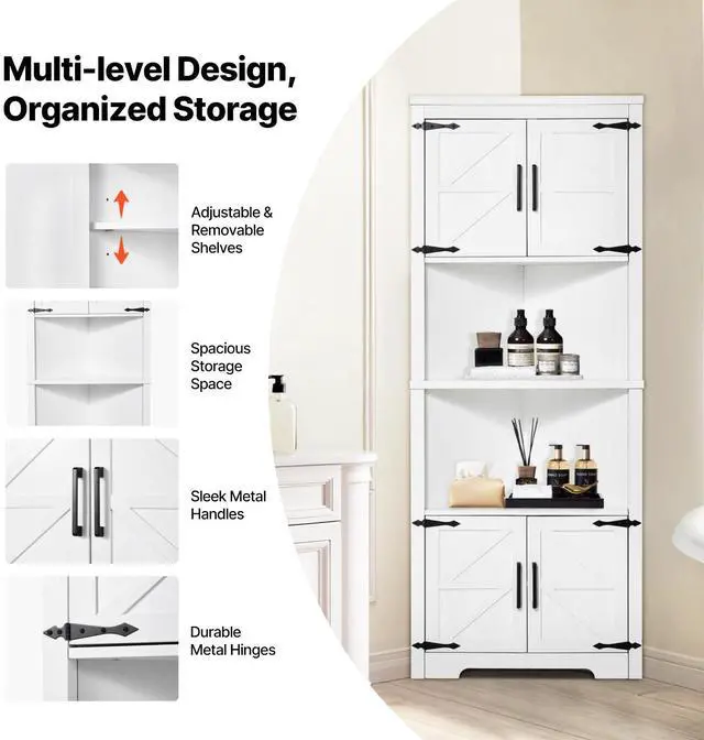 VEVOR 68" Corner Storage Cabinet with 4 Wooden Doors & Adjustable Shelves White