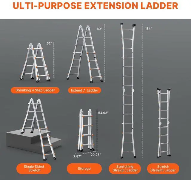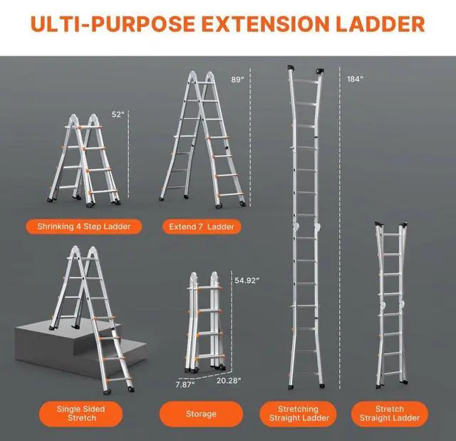 VEVOR Telescoping Ladder A Frame 15 FT Extension Multi-Function for Homework