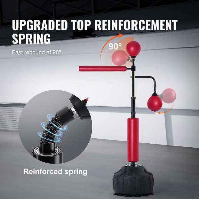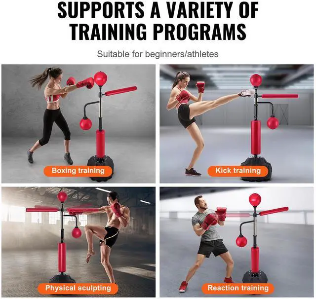 VEVOR Boxing Speed Trainer, Punching Bag with Stand, Reflex Boxing Bag for Teens & Adults, Height Adjustable Free Standing Strike Bag Set with Gloves, Workout Speed Bag for Home Gym Training, Red